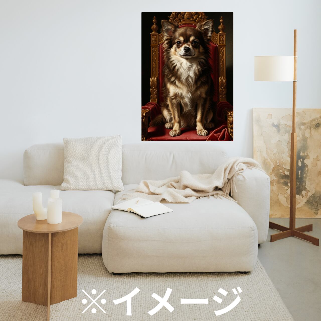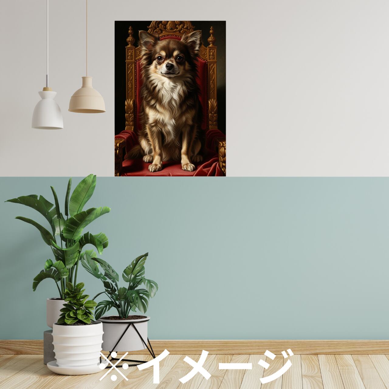 玉座に座る「チワワ」を描いたクラシカルポートレート(肖像画)です。