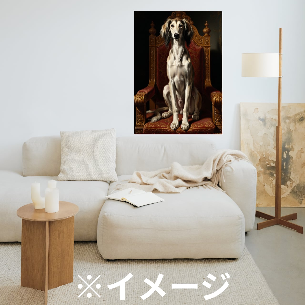 玉座に座る「サルーキ」を描いたクラシカルポートレート(肖像画)です。