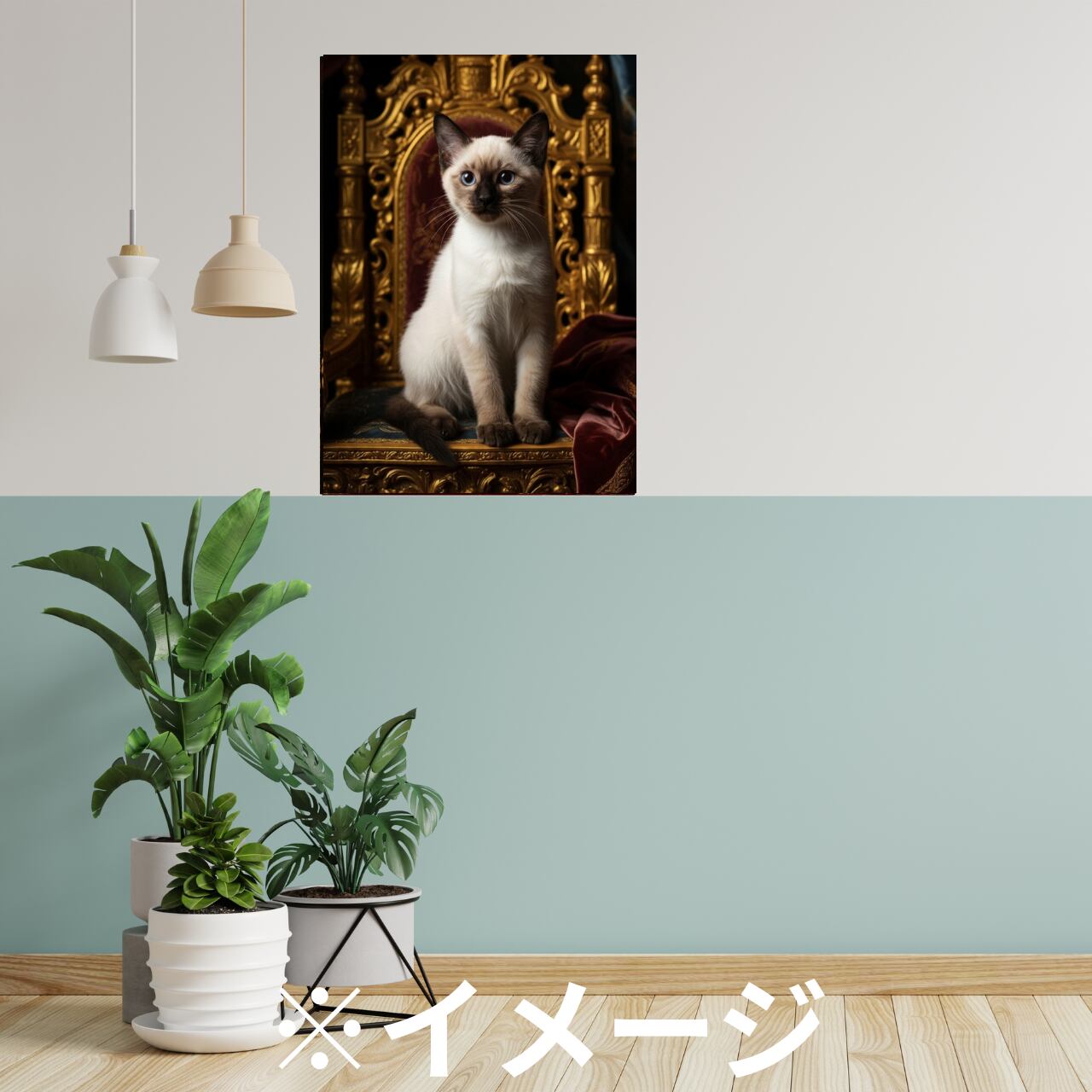 玉座に座る「シャム猫の子猫」を描いたクラシカルポートレート(肖像画)です。